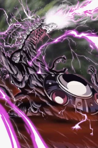 - Shiden Raikō (紫電雷吼, Violet Lightning Thunderclap): Shiden fires a massive violet lightning bolt.